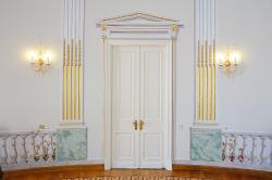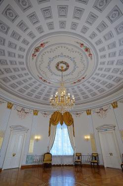 В течение лета специалисты трудились над росписью зала усадьбы. И вот теперь, интерьеры дворца максимально повторяют его первоначальный вид, который был в XIX веке.