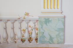 Воссоздание росписи выполнено в акриловой технике. Для позолоты использовано сусальное золото. Архитектурные детали: пилястры, капители, карнизы, кессоны воссозданы живописно, - уточнили в пресс-службе.