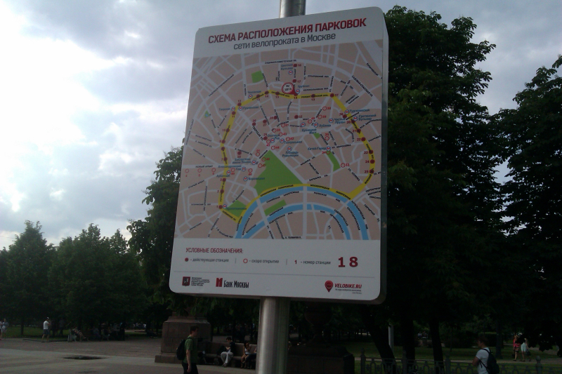 До конца 2013 года в столице планируется обустроить более 100 станций велопроката. Больше всего — в Центральном административном округе: в пределах Бульварного кольца будет расположено 50 станций и до границ Садового кольца — ещё 19. В Юго-Западном, Южном и Западном округах откроют 34 пункта проката. Система велопроката позволяет арендовать велосипед на одной станции самообслуживания, совершить поездку и вернуть его в любой другой пункт проката. Для того чтобы воспользоваться велопрокатом, нужно зарегистрироваться на сайте velobike.ru, ввести свои личные данные и номер телефона. После регистрации пользователь получает логин, пароль и доступ в личный кабинет, в котором можно ознакомиться с информацией о маршрутах, оплате, а также выбрать тариф.