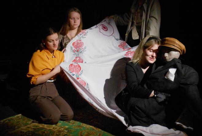 Целью спектакля стало исследование возможности совместить театр кукол и драматический театр внутри романа Наринэ Абгарян «Симон»: четыре актрисы в живом плане управляют одной куклой, в одиночку и сообща.