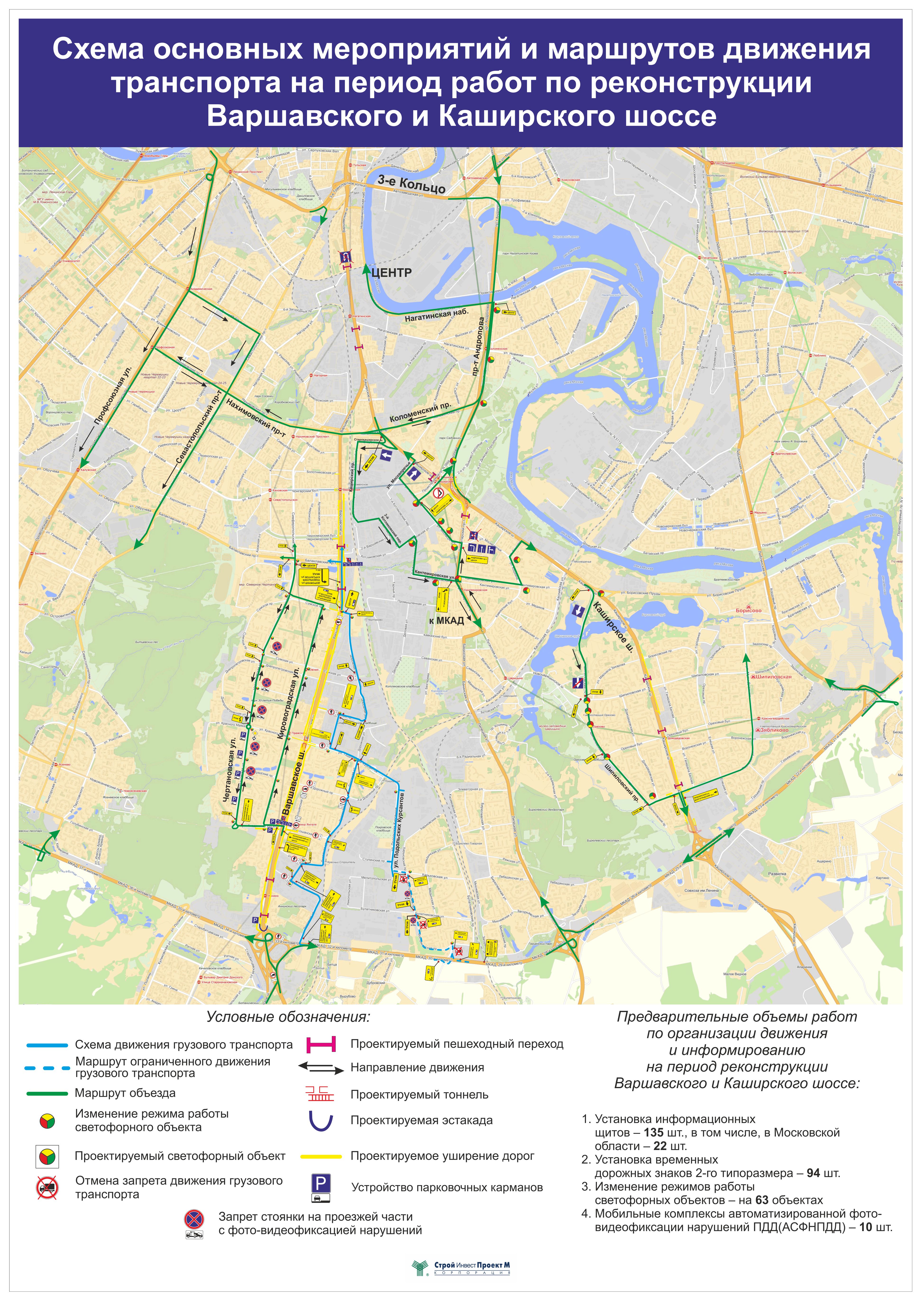 Работы по реконструкции Варшавского и Каширского шоссе начались в декабре 2011 года. Обе трассы должны быть реконструированы к началу 2013 года.