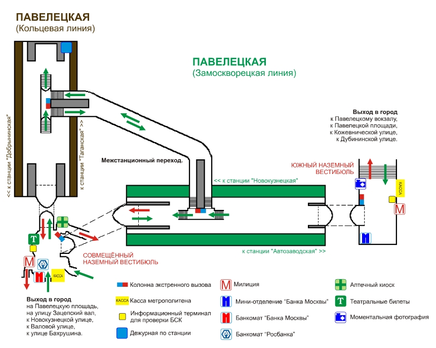 Вход на станцию будет осуществляться через объединённый вестибюль станции "Павелецкая" Замоскворецкой и Кольцевой линий (выход к Новокузнецкой улице).