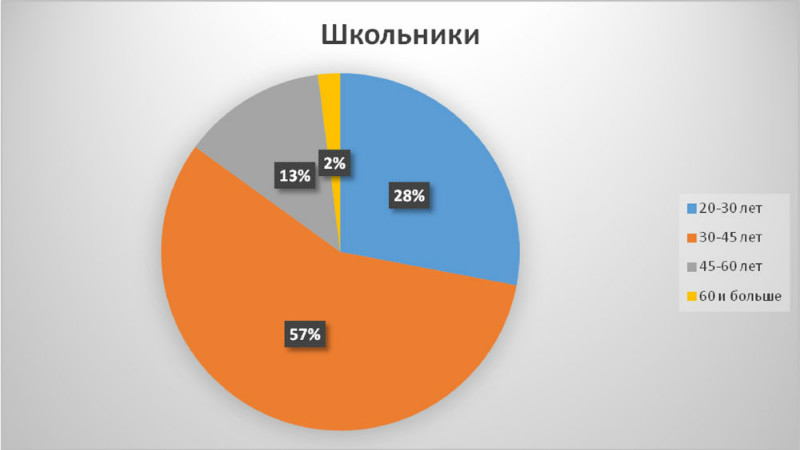 Идеальным возрастом для идеального учителя большинство родителей и школьников назвали интервал от 30 до 45 лет. Не такого почтенного возраста, чтобы быть в отрыве от интересов детей, но и достаточно зрелый, чтобы быть опытным и сосредоточенным на работе. У школьников на втором месте оказались молодые специалисты от 20 до 30 лет – их выбрали 28% детей.